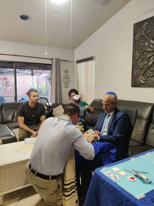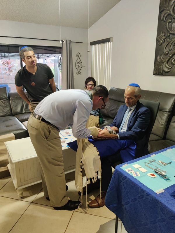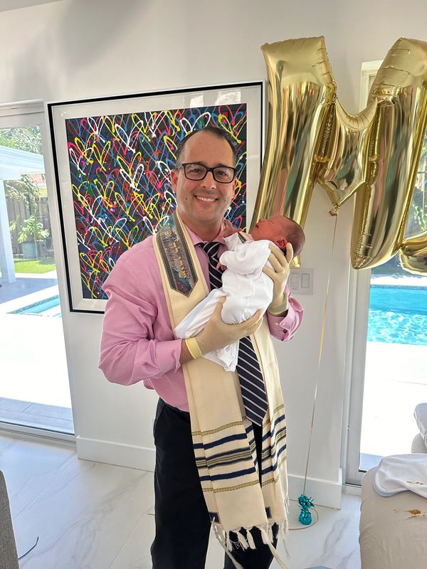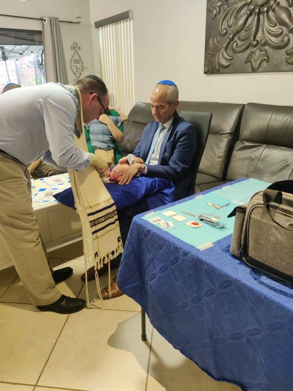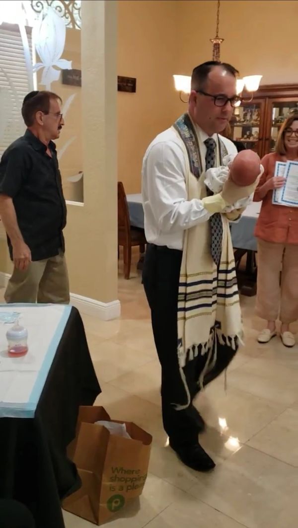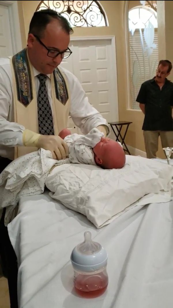 In the Jewish faith, a baby boy at 8 days old is commanded to make a sacred covenant with God. This covenant is symbolized through a brit milah (you may also know this ceremony as a bris or a circumcision) and is conducted by a mohel.